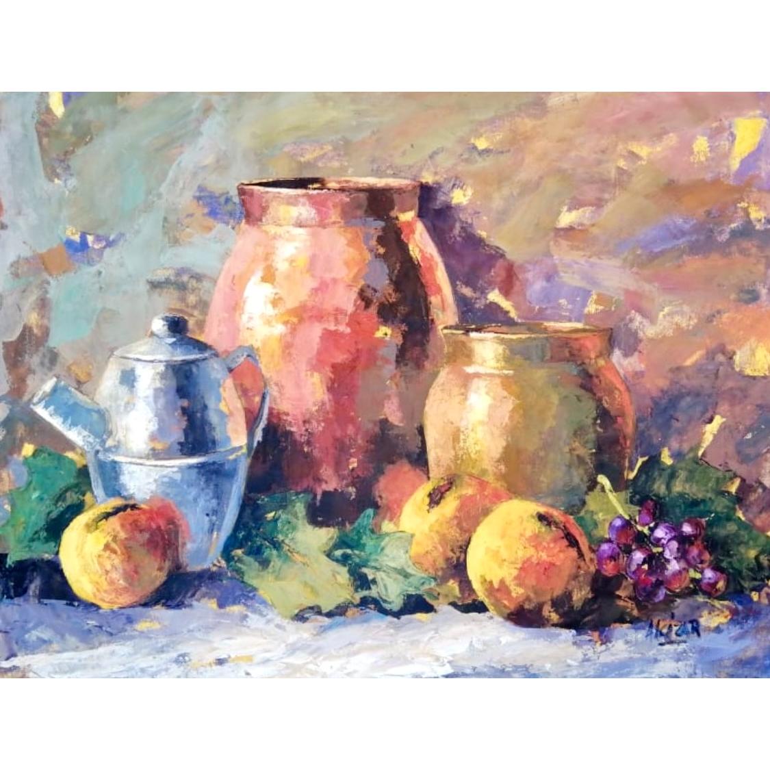Los colores intensos y las pinceladas sueltas dan vida a esta escena cotidiana que evoca tradición y belleza en cada elemento. Ideal para espacios que buscan una pieza de arte original y con carácter.