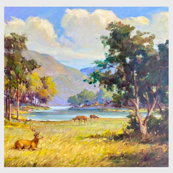 José Díaz nos transporta a un entorno natural lleno de serenidad en este óleo sobre tela (60×80 cm). Con un preciso manejo del pincel, el artista capta la luz, los colores y la profundidad del paisaje, evocando la belleza y armonía de la naturaleza. Una obra excepcional de un maestro de la pintura clásica chilena.