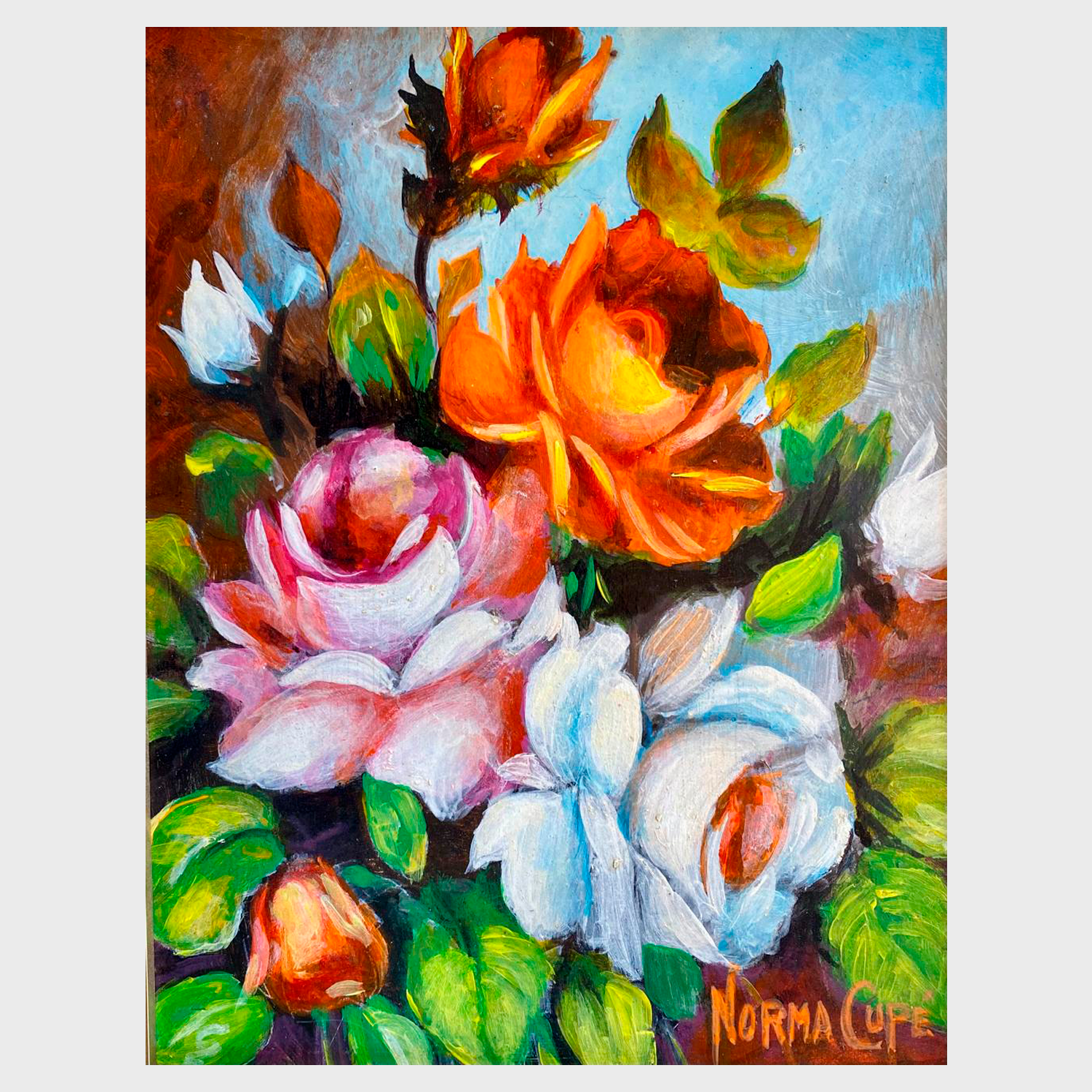 Disfruta de la belleza de la naturaleza con «Rosas», una obra única de la artista Norma Cupé. Este cuadro al óleo de (25 x 20 cm) captura la delicadeza de las rosas en una vibrante composición llena de color y textura. Con tonos cálidos y pinceladas expresivas, esta pintura transmite elegancia y frescura, ideal para cualquier ambiente.